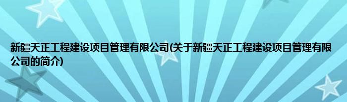 本文关于新疆天正工程建设项目管理有限公司的简介就讲解完毕,希望对大家有所帮助。