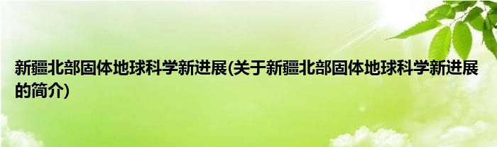 新疆北部固体地球科学新进展(关于新疆北部固体地球科学新进展的简介)