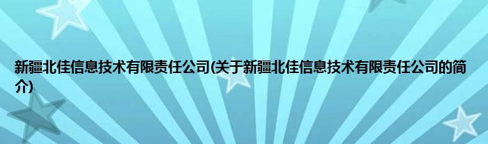 本文关于新疆北佳信息技术有限责任公司的简介就讲解完毕,希望对大家有所帮助。