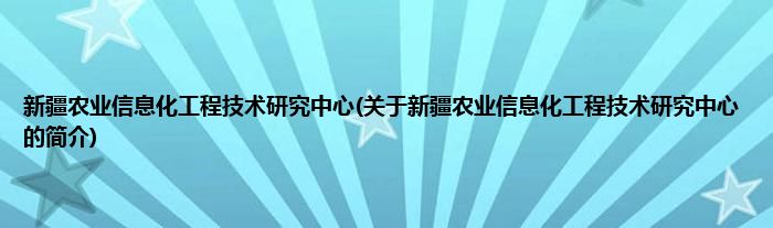 新疆农业信息化工程技术研究中心(关于新疆农业信息化工程技术研究中心的简介)