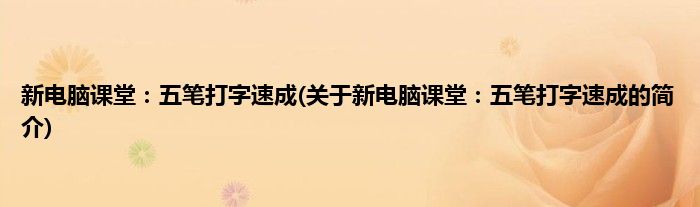 新电脑课堂:五笔打字速成(关于新电脑课堂:五笔打字速成的简介)