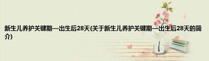 大家好,新生儿养护关键期—出生后28天,关于新生儿养护关键期—出生后28天的简介很多人还不知道,现在让我们一起来看看吧!