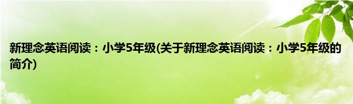 1、 《新理念英语阅读:小学5年级》是2011年上海外语教育出版社出版的图书。