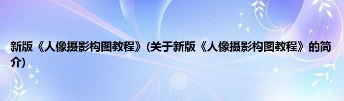 本文关于新版《人像摄影构图教程》的简介就讲解完毕,希望对大家有所帮助。