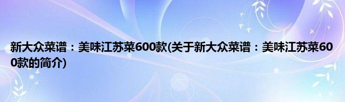 本文关于新大众菜谱:美味江苏菜600款的简介就讲解完毕,希望对大家有所帮助。