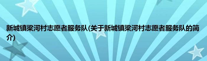 本文关于新城镇梁河村志愿者服务队的简介就讲解完毕,希望对大家有所帮助。