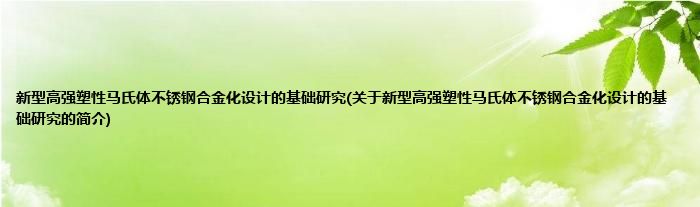 大家好,新型高强塑性马氏体不锈钢合金化设计的基础研究,关于新型高强塑性马氏体不锈钢合金化设计的基础研究的简介很多人还不知道,现在让我们一起来看看吧!
