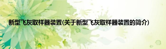 本文关于新型飞灰取样器装置的简介就讲解完毕,希望对大家有所帮助。