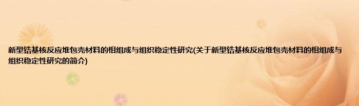 大家好,新型锆基核反应堆包壳材料的相组成与组织稳定性研究,关于新型锆基核反应堆包壳材料的相组成与组织稳定性研究的简介很多人还不知道,现在让我们一起来看看吧!
