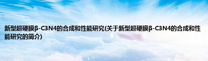 本文关于新型超硬膜β-C3N4的合成和性能研究的简介就讲解完毕,希望对大家有所帮助。