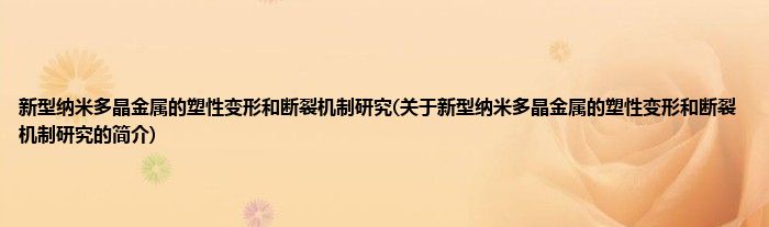 本文关于新型纳米多晶金属的塑性变形和断裂机制研究的简介就讲解完毕,希望对大家有所帮助。