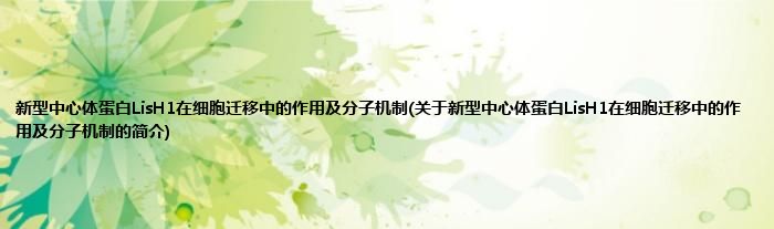 本文关于新型中心体蛋白LisH1在细胞迁移中的作用及分子机制的简介就讲解完毕,希望对大家有所帮助。
