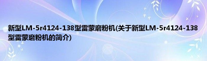 本文关于新型LM-5r4124-138型雷蒙磨粉机的简介就讲解完毕,希望对大家有所帮助。