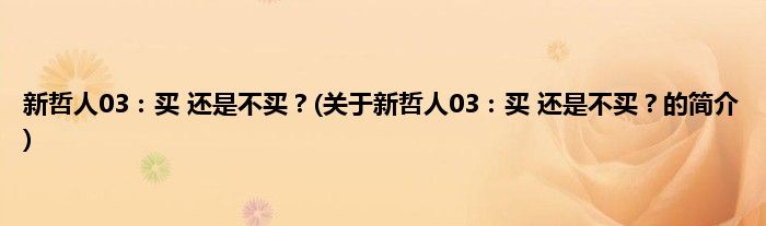 大家好,新哲人03:买,还是不买?,关于新哲人03:买,还是不买?的简介很多人还不知道,现在让我们一起来看看吧!