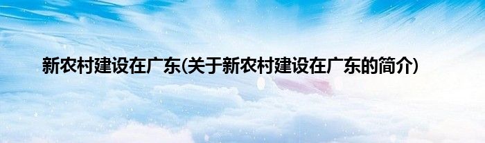 本文关于新农村建设在广东的简介就讲解完毕,希望对大家有所帮助。