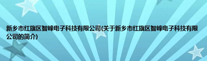 新乡市红旗区智峰电子科技有限公司(关于新乡市红旗区智峰电子科技有限公司的简介)