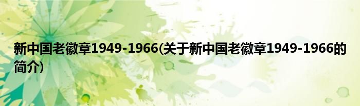 新中国老徽章1949-1966(关于新中国老徽章1949-1966的简介)