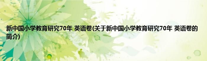 大家好,新中国小学教育研究70年 英语卷,关于新中国小学教育研究70年 英语卷的简介很多人还不知道,现在让我们一起来看看吧!