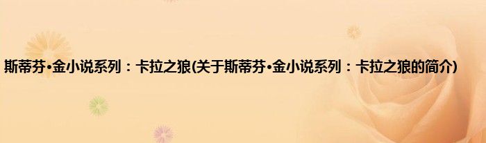 本文关于斯蒂芬·金小说系列:卡拉之狼的简介就讲解完毕,希望对大家有所帮助。