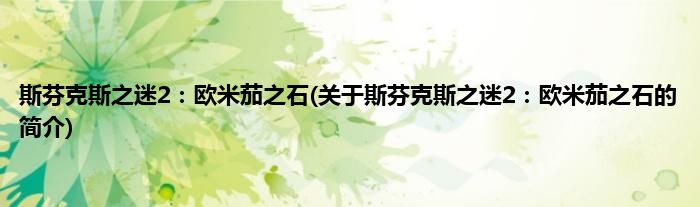 本文关于斯芬克斯之迷2:欧米茄之石的简介就讲解完毕,希望对大家有所帮助。
