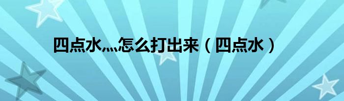 大家好,精选小编来为大家解答以上问题。四点水灬怎么打出来,四点水很多人还不知道,现在让我们一起来看看吧!