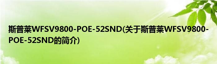 本文关于斯普莱WFSV9800-POE-52SND的简介就讲解完毕,希望对大家有所帮助。