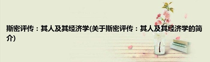 本文关于斯密评传:其人及其经济学的简介就讲解完毕,希望对大家有所帮助。