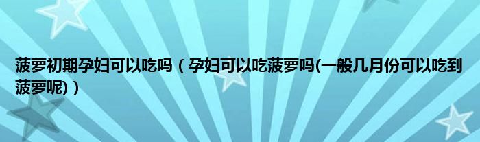 大家好,小科来为大家解答以上问题。菠萝初期孕妇可以吃吗,孕妇可以吃菠萝吗(一般几月份可以吃到菠萝呢)很多人还不知道,现在让我们一起来看看吧!