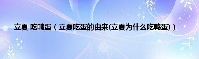 大家好,小科来为大家解答以上问题。立夏 吃鸭蛋,立夏吃蛋的由来(立夏为什么吃鸭蛋)很多人还不知道,现在让我们一起来看看吧!
