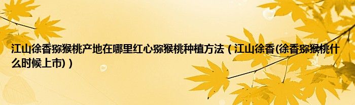 大家好,小科来为大家解答以上问题。江山徐香猕猴桃产地在哪里红心猕猴桃种植方法,江山徐香(徐香猕猴桃什么时候上市)很多人还不知道,现在让我们一起来看看吧!