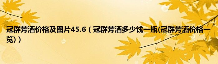 大家好,小科来为大家解答以上问题。冠群芳酒价格及图片45.6,冠群芳酒多少钱一瓶(冠群芳酒价格一览)很多人还不知道,现在让我们一起来看看吧!