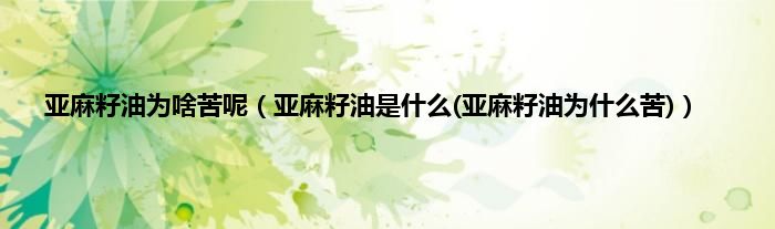 大家好,小科来为大家解答以上问题。亚麻籽油为啥苦呢,亚麻籽油是什么(亚麻籽油为什么苦)很多人还不知道,现在让我们一起来看看吧!