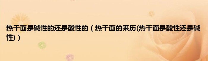 大家好,小科来为大家解答以上问题。热干面是碱性的还是酸性的,热干面的来历(热干面是酸性还是碱性)很多人还不知道,现在让我们一起来看看吧!