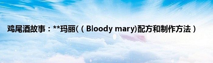 大家好,小科来为大家解答以上问题。鸡尾酒故事:**玛丽(,Bloody mary)配方和制作方法很多人还不知道,现在让我们一起来看看吧!
