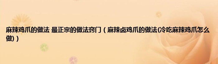 大家好,小科来为大家解答以上问题。麻辣鸡爪的做法 最正宗的做法窍门,麻辣卤鸡爪的做法(冷吃麻辣鸡爪怎么做)很多人还不知道,现在让我们一起来看看吧!