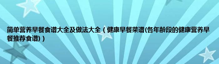大家好,小科来为大家解答以上问题。简单营养早餐食谱大全及做法大全,健康早餐菜谱(各年龄段的健康营养早餐推荐食谱)很多人还不知道,现在让我们一起来看看吧!