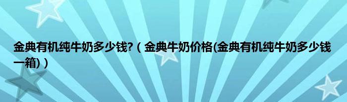 大家好,小科来为大家解答以上问题。金典有机纯牛奶多少钱?,金典牛奶价格(金典有机纯牛奶多少钱一箱)很多人还不知道,现在让我们一起来看看吧!