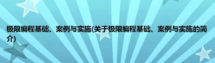 大家好,极限编程基础、案例与实施,关于极限编程基础、案例与实施的简介很多人还不知道,现在让我们一起来看看吧!