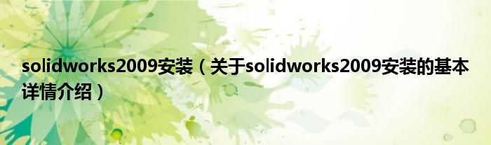 本文关于solidworks2009安装的基本详情介绍就讲解完毕,希望对大家有所帮助。