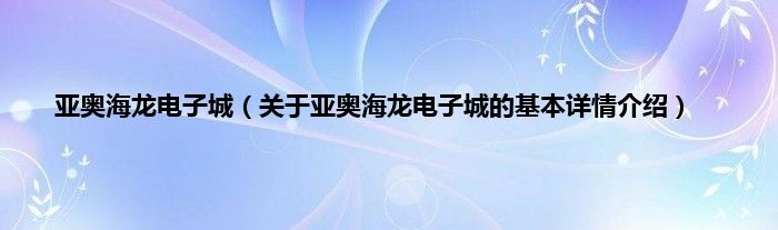 亚奥海龙电子城(关于亚奥海龙电子城的基本详情介绍)