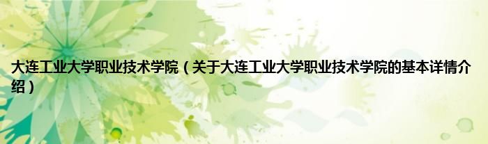 本文关于大连工业大学职业技术学院的基本详情介绍就讲解完毕,希望对大家有所帮助。
