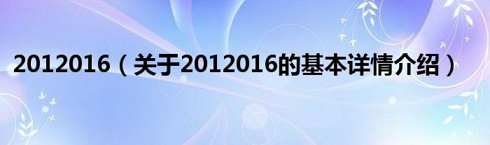 本文关于2012016的基本详情介绍就讲解完毕,希望对大家有所帮助。