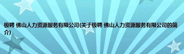 本文关于极聘 佛山人力资源服务有限公司的简介就讲解完毕,希望对大家有所帮助。