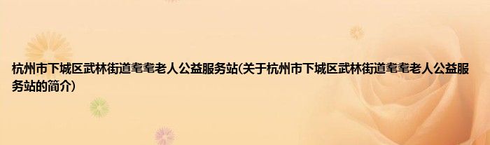 本文关于杭州市下城区武林街道耄耄老人公益服务站的简介就讲解完毕,希望对大家有所帮助。