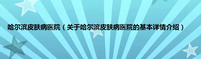 本文关于哈尔滨皮肤病医院的基本详情介绍就讲解完毕,希望对大家有所帮助。