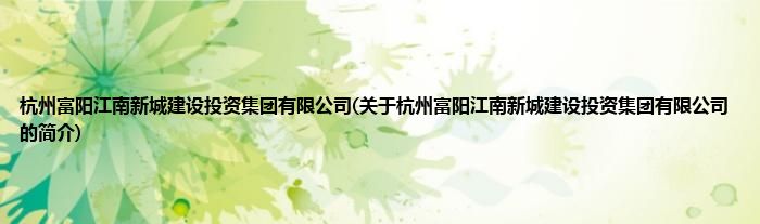 杭州富阳江南新城建设投资集团有限公司(关于杭州富阳江南新城建设投资集团有限公司的简介)