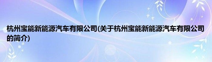 本文关于杭州宝能新能源汽车有限公司的简介就讲解完毕,希望对大家有所帮助。