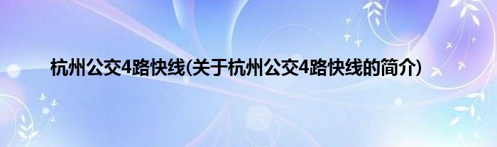 大家好,杭州公交4路快线,关于杭州公交4路快线的简介很多人还不知道,现在让我们一起来看看吧!