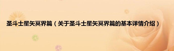 圣斗士星矢冥界篇(关于圣斗士星矢冥界篇的基本详情介绍)