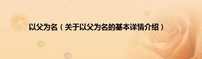 本文关于以父为名的基本详情介绍就讲解完毕,希望对大家有所帮助。